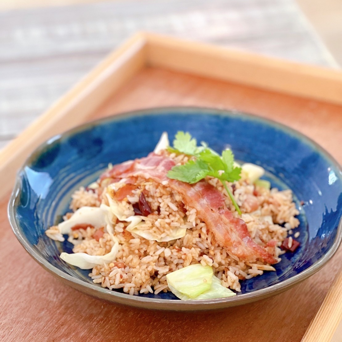 ข้าวผัดเบคอนพริกแห้งผักกะหล่ำ