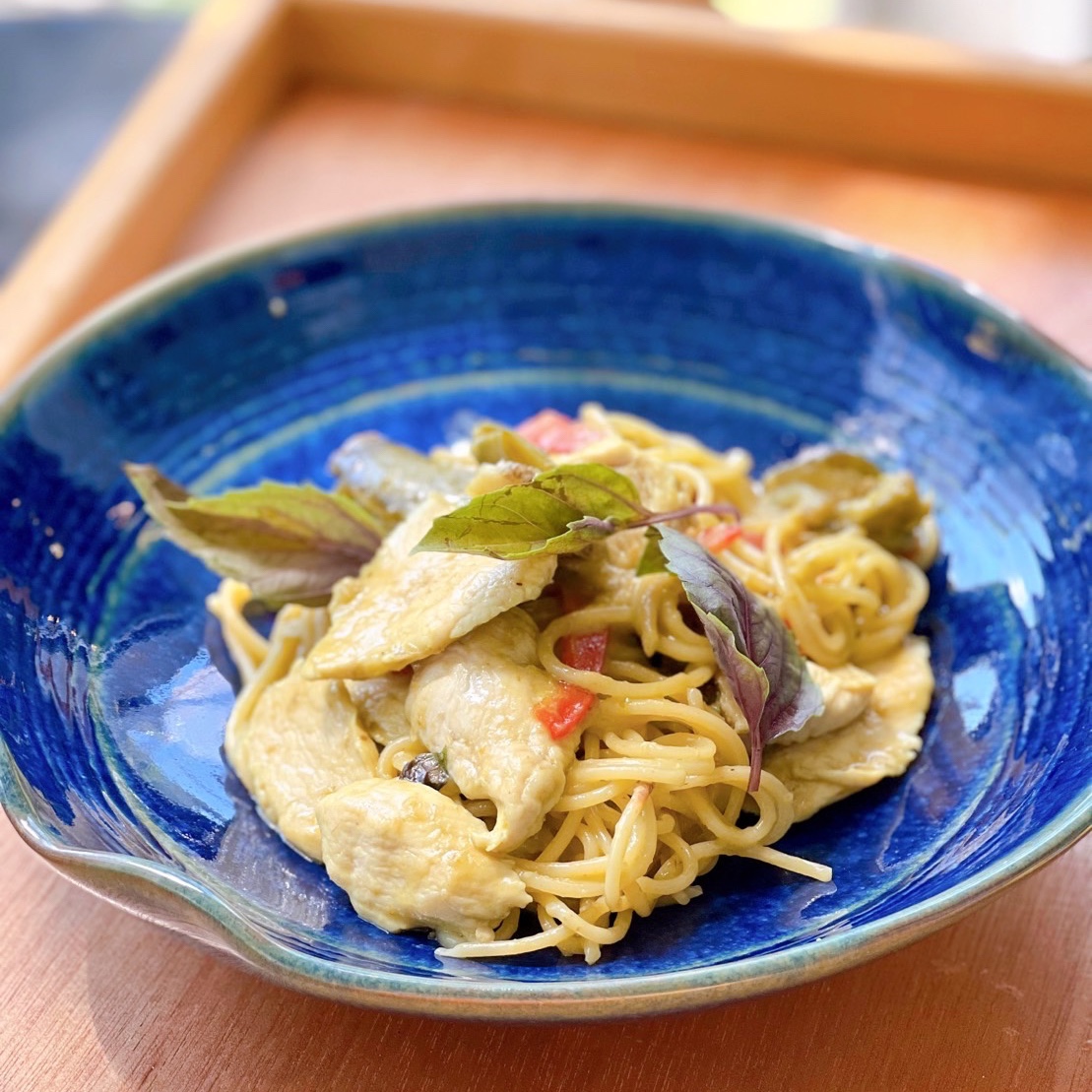 Spaghetti with Green curry chicken